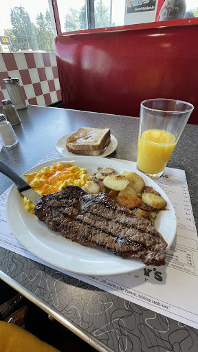 Ā Ā Ā Read moreExperience was terrible! After we ordered our food, the waitress brought someone elses order to our table, without thinking. We said the food wasn't ours and she turned to take it away, but spilt my water all over me. She gave the food to the right people, but left half of it on our table; she didn't even realize until I brought the food to the right table for her. She then thought it would be a brilliant idea to sweep up the water with a broom; it did absolutely nothing. Then she got a mop, that was already wet, and proceeded to smear the mucky water everywhere; it wasn't cleaned up properly and muddy footprints were all over the floor. She put a "wet floor" sign on the ground and I swear that did a better job of cleaning it up than her (sarcasm). She gave me three paper towels to clean myself, but it didn't really help; my right leg was completely soaked. I also had to wipe the counter and the seat for her because she didn't do it properly; it was still wet. My father asked for a plate to put his tea bag on, but that didn't come until after he finished the tea; the plate was irrelevant. When the correct food came to our table, we didn't get any cutlery. We sat there waiting for 10 minutes without forks or knives. The portions were small; two eggs looked like one, bacon was tiny. We finished out meals and paid, and in that entire time I also never got a replacement water for what she...