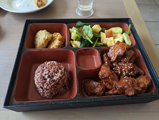 Read moreI ate lunch hear with my wife today. I had Lunch Combination C72. Vegetable Curry with Mushrooms Combo - Vegan. Each combination comes with purple rice, two pieces of soy nuggets, and salad in a bento box. Soup of the day is served on the side. My wife ordered C79. Kung Po Soy Chicken Combo & we shared a order of spring rolls.