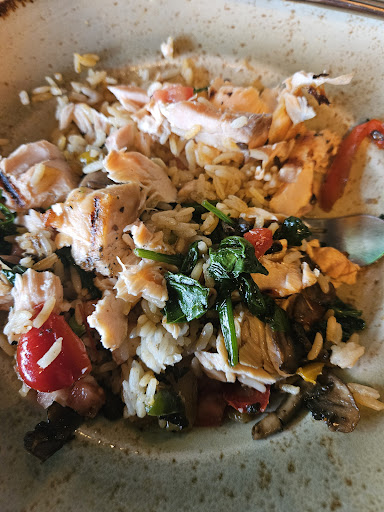 My husband’s salmon was so overcooked and dry it was basically inedible, he could have used it as a hockey puck. My brother-in-law’s wrap looked decent, but even the kids' chicken fingers were soggy, and the fries were soaked in oil.