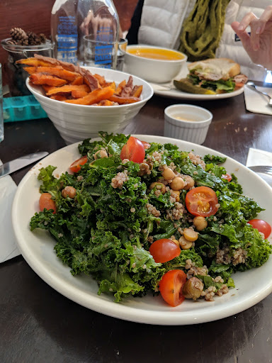 #1. Very drafty and cold in the winter #2. Portions are very small and each portion is sold individually (I.e. no sides with entrƩes) #3. I ordered the portobello burger... it was 90% a dry, huge white bun with razor-thin sliced cucumbers and a light skim of hummus. The mushroom itself was slimy and unpalatable especially due to the consistency. I sent it back and had the staff argue with me about it, demanding I pay full price despite me being physically unable to choke more than two bites down.