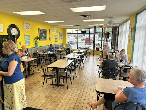 My son and I visited this diner after his swimming lessons. He had the cowboy burger with fries. it has onion rings and fresh white onions in it*. He said it was comparable to Harvey's. I ordered the small eggs Benedict done soft with sauce on the side. Small has 2 poached eggs, Canadian bacon, served in an english muffin. Unfortunately the sauce was lathered on it and the waitress noticed once she brought it to me. She offered to have it remade but I declined as I didn't want food to go to waste. When I cut into the eggs they were both cooked to medium, a little disappointed but again continued eating. Hollandaise sauce is sometimes strong but this was mild so that was nice. The eggs had a slight metallic taste which was distracting to the meal. My potato wedges were spot on, coffee was hot. My son wants to return, and when or if we do, I'll stay away from the poached eggs. I caught a glance of part of the neighbouring table and I need to say I was highly impressed by the thick slices of (what looked like...