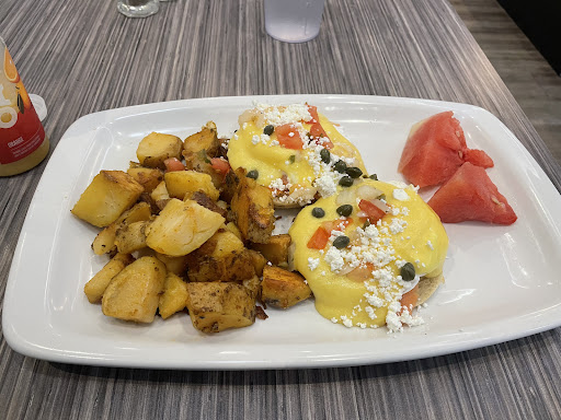 We had ordered two of the Eggs benedict meals, eggs were overcooked, Hollandaise sauce was bland, got charged an extra $1 for French fries (when it comes with the side of potatoes, no other restaurants charge for French fries instead of home), the eggs benedict is advertised to have parsley on top and come with a decent amount of fruit....we were given one small piece of watermelon.