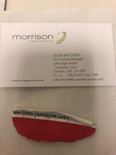 Ā Ā Ā Read moreMost rude lady I have ever talked to in my entire life. I watch down to Tim Hortons after my 4 year old baby was admitted to the hospital with his mom and the staff forgot to give her dinner or breakfast so they advised me I could do down stairs and probably get her a bagel. Upon walking up to.l the counter an older lady begimd the counter in her 50s says do you work here.. when I proceeded to tell her the issues all she tells me is that's not my problem and I can't help you and they shouldn't be sending you down here anyways and starts pointing at a sign posted above the till stating they don't serve the public... when it's a patient in your hospital is it the public? And to top ot all of right after that she make a noise as in disgust that I even asked her and she walked away when I mentioned there is no reason to be rude and she smiles back... not s very good way to treat a patient or anyone at all as far as I'm concerned. I feel like any lady that treats anyone like that in a hospital should not work in a hospital environment. Upon reading reviews it sounds like this is not the first time someone had been treated very rudely by the staff and I feel like this issue should...