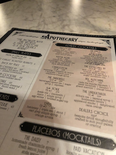 I enjoyed the place it's beautiful and the service was courteous and helpful. My only concern is, are we really at the stage of offering 3 oz 18-19$ up to 21$ cocktails.again for 3 oz only? I'm not talking about a huge tall long cocktail, not at all, but a champagne size or old fashion size cocktail. And all that because of the ingredients they put into it. OK it seems fancy but it wasn't impressive at all the waiter told us the cocktail my friend had the Apotheka with the Hennessy Scotch has been returned 3 times last week... Huh? My cocktail the Susan Lyon was not particularly good it was a random cocktail at a very high price I would not recommend it and never for such a high price.