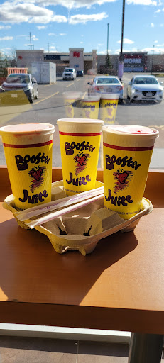 My family and I went to this Booster Juice location and I politely asked this young red haired server for a Matcha Monsoon smoothie. She replied in a very rude tone of voice while glaring at me and asked me what kind of Matcha did I want. I repeated politely, once again saying that I would like the Macha Monsoon. She glared at me angrily and said said WHAT KIND DO YOU WANT....THERE ARE 2 KINDS...I was confused as I specified what I wanted twice. My son looked at her and told her she was being very RUDE, that she is customer service and that she should not be rude to the customers. She disregarded my son's comment and continued to punch in our order without an apology. She then proceeded to the food counter and complained to her co-worker about us. WOW!!!!! I am giving this place a ZERO for service. I see in the review that I am not the only one who has complained about this girl. I am in shocked that she is still working...