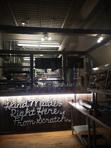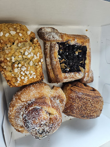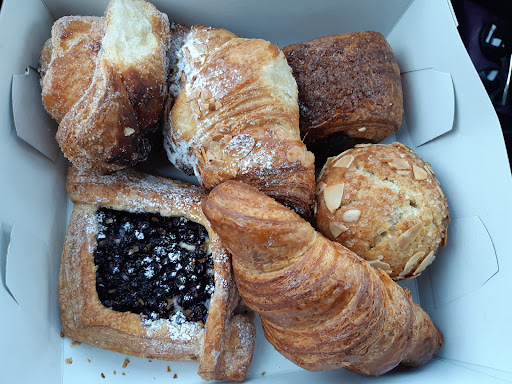 (2016) SUCH a terrific find! I loved this place at first sight and smell! My companions and I shared a chai latte, their hazelnut latte, a black Happy Goat coffee, a blueberry croissant (Danish?), a chocolate croissant, a maple croissant, and a cheese croissant -- they were all simply scrumptious! We all agreed that the pastries were some of the best (flakiest, tastiest, well-made ) we had ever tasted -- made fresh that AM! We actually brought twice as much as intended because our first serving was so delicious! This is a full-fledge bakery, with loaves of bread in addition to pastries. The eating area is small: there is a counter at the cash which has about 3 bar chairs, there is one table with 4 chairs, and there are two comfy chairs kitty-cornered to each other. The washroom is gorgeous and clean. Not sure if there is Wi-Fi (I didn't ask). This is not a place to chill for hours or to study (no room). Not sure if there are outlets, either. Parking is on the street (but I don't know if they have any customer parking of their own).