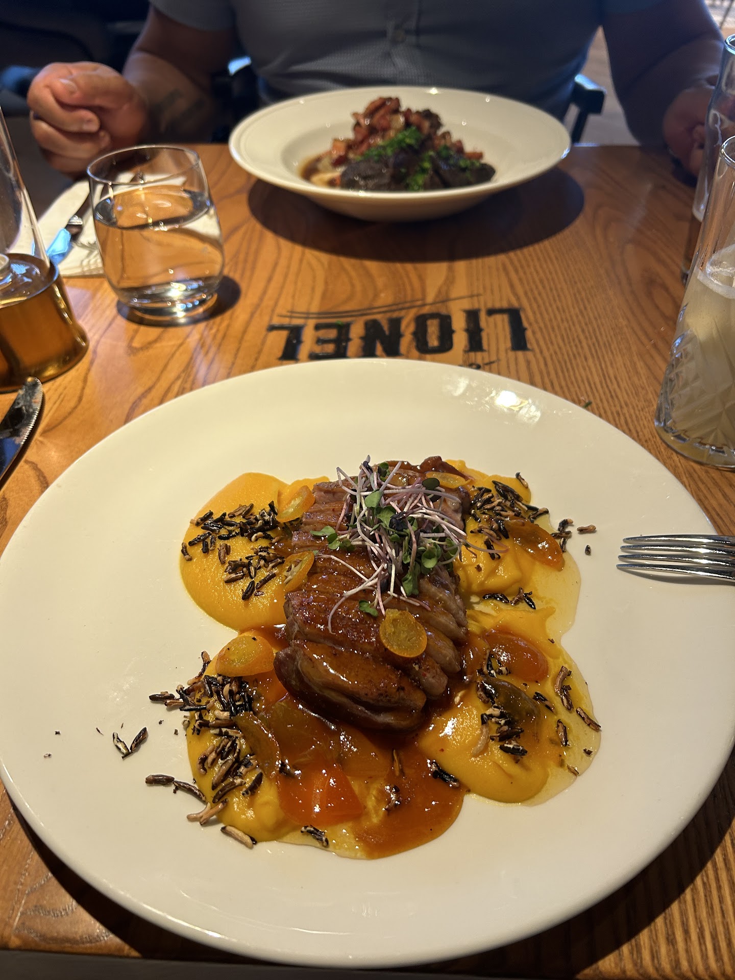 Cons: -I ordered the duck breast. My duck was uncooked, the rice side was burnt to a crisp, and the meal overall tasteless. My replacement meal of the risotto was a 5/10 with it being overcooked but it was still edible. -There were many malts that were listed on the menu but the server let us know only one was actually available. -it took our poor server (and eventually the manager) 11 times to take our payment as their POS system was not working with multiple efforts from multiple machines.