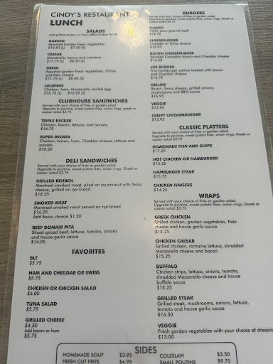 Read moreWe went in looking for some breakfast and to kill some time between a plane and a train. Our year and a half old daughter was hangry, and we had our hands full with suitcases, backpacks, and diaper bags. One of the cooks came out front to open the door for us, then gave my daughter some bacon to stave off a full blown meltdown. The other two staff were just as lovely, supportive, and patient. The food itself was terrific - perfect diner breakfast, and most items were between $6 and $16. Staff were amazing, food was incredible, and the other customers were wildly welcoming - Cindy’s obviously has a special place in the community. Can’t recommend...