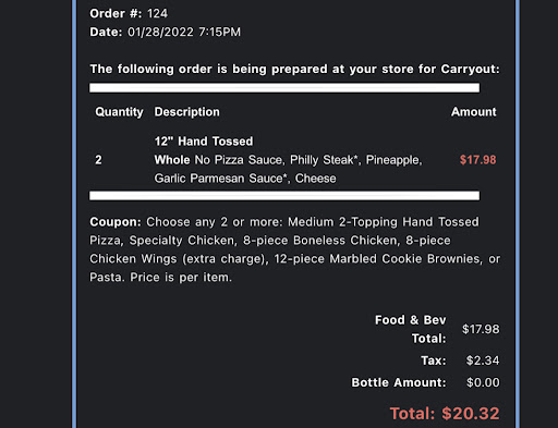 Last night, we ordered two pizzas for delivery on the Dominos app (not on a third party app), and when our order showed as ‘delivered’ by the driver Frank on the app, my wife called the location directly and was met with someone extremely rude and unhelpful on the phone presenting himself as the manager on duty. When I picked up the call and shared that our pizza was not delivered as indicated, the ‘’manager” continued to repeat the exact same thing, saying that his driver had delivered the pizzas. We were sitting outside with the garage door open the entire time, and we have cameras on the property - no pizzas were delivered. Not once did the “manager” offer to remake and deliver the pizzas that we paid for and did not receive. When I asked for the “manager’s” name and that I wanted to escalate, he would not provide his name to me. During this time, my wife and a friend walked down the street to see if they could find the pizzas at a different house, and alas there they were, a 5 minute walk down the street at a completely different address.