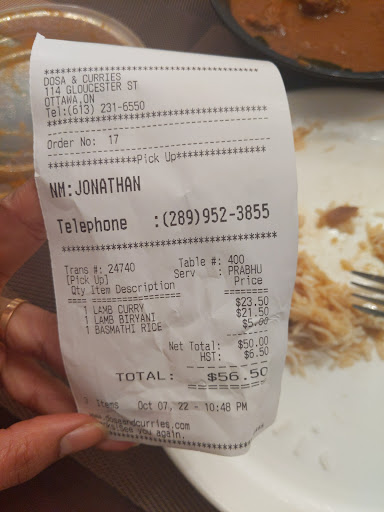 Read moreWe were in Ottawa for the weekend and we’re craving some Indian food and came across this restaurant. We had tried calling several times to order the food through the phone but was not able to get through for over 2.5 hrs. But we decided to go in person anyway. As soon as we walked in we noticed a young girl on the phone chatting away on a personal call. We also noticed every single table had dirty cups plates and cutlery that had dried up curry on it (plates were sitting there for a while).