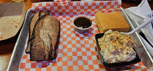 But now, let's talk about the brisket. Sadly, it was a letdown. I received three measly, thin slices of brisket. I kid you not, they were so thin that they ended up drying out. I had to drown them in sauce just to salvage some moisture. I can't help but imagine that the brisket used to be one thick, juicy slice, but people probably complained about portion sizes. And now, we're left with these three sad slices of brisket. It's a real downer. The sides didn't fare much better either. The mac and cheese tasted like the store-bought kind my mom used to get, and the potato salad reminded me of the one from Costco (maybe it was the same stuff). Again, it was quite disappointing.