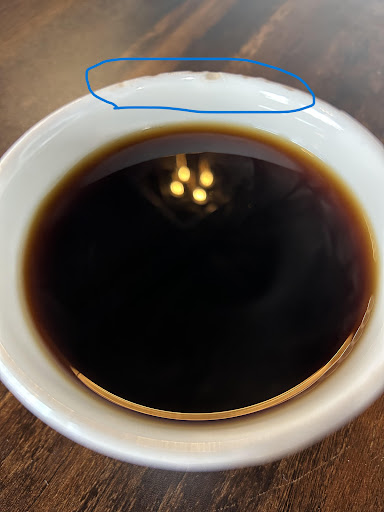 A few things went wrong. First, the coffee cup they gave me was chipped and stained so I didn't feel like it was clean enough - see photo. Secondly, they ask for a tip as you pay, but then you stand and wait for your coffee AND they expect you to bring your dishes to this station that has a very cheap hand-written sign - see photo. Couldn't they simply use a printer to have something a little more formal? Thirdly, some older man behind the counter was not helping the staff be he paced around on his cell phone talking louder than anyone else in the place and he even paced near our table - very annoying and bothersome - not a pleasant visit. They served my wife tea in a coffee mug without a saucer so there was no place to leave the tea bag. Lastly, my wife almost killed herself when the lop-sided stool she was using almost keeled over - see photo. I was not impressed by this location - the location near the Trainyards is so much...