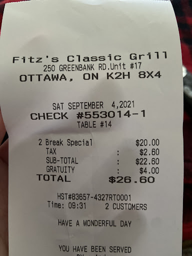 Read moreExpectations were low. Stumbled upon this gem when looking for lunch. We almost got Subway but decided last minute to call an audible and to give this place a try. Holy $#!% this place exceeded all expectations. There was no way i was expecting this level of succulent pulled pork. Every bite brought joy and sadness. Joy because it was awesome. Sadness because with each bite i took i came closer to finishing the plate. We paired the pork with some mac and cheese. It's rare to find a restaurant that does mac and cheese right. I don't know why it's so difficult but it's either liquidy or dry or lacks flavour. Fitz's mac and cheese knocked it out of the park. Perfect consistency and flavour. You could tellthey take pride in both their mains and side dishes equally. Next was the corn bread. I'm pretty picky when it comes to corn bread. But let me tell ya this bread was fantastic!!! Moist, sweet, flavorful, dense, bursting with badassness!!! And all this for $14?!?! ARE YOU KIDDING ME?!?!?! #ShutUpAndTakeMyMoney!!! I'm a huge BBQ fan and this might be the best place in ottawa for BBQ. And to think I almost went to Subway. Could have been the biggest...