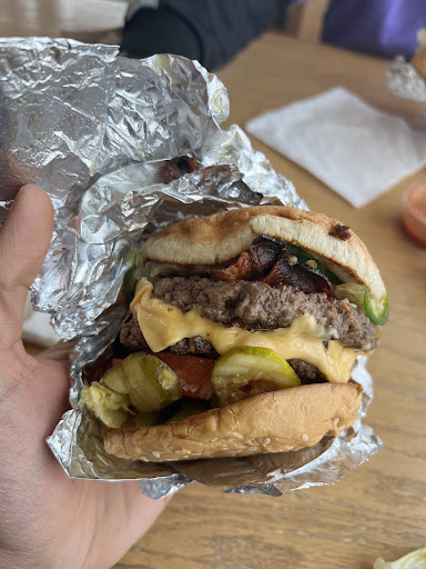 My first-time at Five Guys...this place impressed me! I thought it was just going to be another burger joint that's overpriced, BOY WAS I WRONG! I didn't know what to order so I asked the cashier, he was so nice and took the time to explain to me the difference between a Cheeseburger and a Little Cheeseburger. I got the Cheeseburger and Bacon Cheeseburger, large fries, and large drink. I thought it was just going to be a normal size burger, AGAIN...I WAS WRONG! The burgers were HUGE! One of the regular size burger is MORE THAN ENOUGH! Just like it was advertised, as much peanuts as you want and you get an extra scoop of fries into your takeaway bag! IT WAS MORE THAN ENOUGH! The burgers were FANTASTIC! Made to order right on the grill, excellent beef, fresh toppings, not expensive at all, for the portions you get, it's value in today's economy! The conductor of the kitchen, the girl in blonde with glasses, WOW....she was amazing, I watched her direct the kitchen by politely shouting out orders, I don't know if all Five Guys are like this but SHE WAS IMPRESSIVE! She's a super polite/nice version of Gordon Ramsey! Whoever hired her, that was the BEST DECISION for this location! This location is definitely a standard for any other burger joints and restaurants to follow! The food was sooo good, the service was sooo good, the wait time for your food was not long at all, lots of seating inside, lots of parking up front...I watched people go in here every few minutes, the Thai Express next door will be out of business in no time! Very satisfied, I will definitely be back! HIGHLY HIGHLY HIGHLY RECOMMENDED for anyone that's...