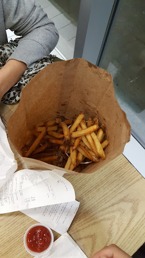 I went to this Five Guys location on a Saturday night in November and really appreciated the food as well as the service. I ordered a cheeseburger while my family ordered little cheeseburgers, and we shared a large fry.