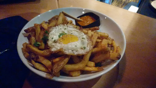 Next, you feel the warm touch of a classy, leather-bound menu to greet your eyes in measure with your pallet. Depending on your visit, you might find yourself in new waters. The menu is not stagnant. It mirrors its Brews-menu neighbor. Often changing to greet the neighborhood upon entry and reward your walk up.