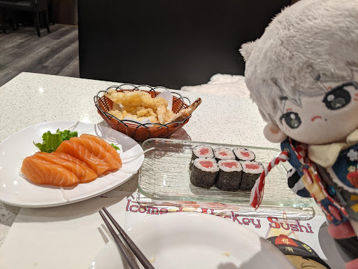 Ive only been to hockey sushi twice. The first time i had a plate of saucy food ( not even mine ) dropped onto my lap and into my purse. The waitress apologized and me knowing that accidents happen i said that its okay and not to worry about it.
