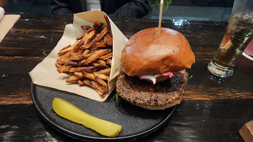 The food here is phenomenal. I would put it up there with two of my other favourite pubs: the Cheshire Cat in Carp and the Swan in Greely/Manotick area. I enjoyed my meals on my previous visits at Hunter's Public House (the Meatloaf especially is outstanding), so I was eager to try something different. I love that there is such a nice variety on the menu: fish and chips, Boxy's, burgers, curries, tacos, and also lighter fare such as homemade soups and salads. Since I wasn't that hungry (I had a late lunch), I got the veggie and goat cheese (veggie) burger, which was great and tasted homemade (as opposed to a regular frozen garden patty). I especially love the layer of goat cheese on it. My friend enjoyed his meatloaf and said the gravy was amazing. Their 'smashed' potatoes (which are similar to roasted potatoes) are good, but I think I'd prefer mashed potatoes (just my personal preference), especially with the meatloaf and other hearty meals that come with gravy. I wish that was an option, but they do have a nice variety of sides (fries, daily soup, salad, smashed potatoes etc). You can also upgrade to a soup (ale and mushroom), Caesar salad, etc. Everything tastes fresh and homemade, and much better than regular pub fare.