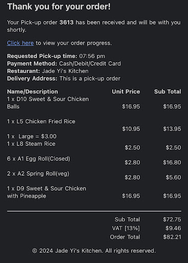 Spring rolls are good. sweet and sour pork was good. Tender. Black bean rice noodles with beef are probably the best in Kanata Stittsville. Better than Rideau restaurant that closed down, Café Orient. Maybe better than Ng’s on Merivale. I have finally found a good restaurant with Xi Jiu Nau Ho!