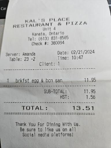 If Kal’s was in the Market or Westborough there would likely be lineups out the door for breakfast, and it would probably get a 5-star rating. Sadly, since Kal’s is located in a strip mall I can’t really justify a 5-star rating, although I reserve the right to change my opinion on my next visit. If you are hungry for breakfast, and just so happen to be in Kanata, I recommend you try Kal’s place. Hopefully you will be as surprised as I was. Oh and don’t forget to bring your ‘20% off any one item’ coupon for Bed Bath and Beyond! Assuming...