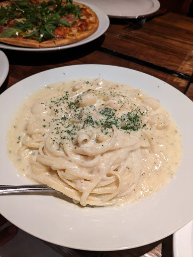 Read moreMyself and my three friends had a terrible experience here. Though they were busy and seemed to be understaffed, our service was terrible and extremely slow. We ordered garlic bread as an appetizer which we were looking forward to. Almost an hour passed by since we ordered and still no garlic bread, no meals, and no update as to what was taking our food so long. Our server then came to our table and told us that the kitchen was backed up and that our food would be out in a few minutes. She did offer complimentary bread and butter while we waited, however, this was after we had already been waiting for an hour. This complimentary bread and butter eventually came after we had already had our meals, and it was just bread with no butter. When we asked our server for an update on our garlic bread she had no idea what we were talking about, but said she would go check on it. She never came back with an update, and also never offered an apology or compensation. When our food finally arrived, we were given no cutlery or napkins. So, we then had to wait again for someone to come around (not even our server) and ask for cutlery. He returned with four forks in hand, not wrapped so no napkin and no knives. In addition, I ordered the spicy rigatoni. I got a meal on the menu called ‘Al Funghi’, a completely different meal and name. I know I did not order this pasta because I do not like mushrooms or spinach so I would not have ordered a meal with both of these things in it. I also know I made sure to specify that I wanted the spicy rigatoni when I ordered as both of these meals included rigatoni. I’m not sure if this was an issue with the server or with the kitchen. This was extremely disappointing as I had already waited an hour for my food. I didn’t say anything only because I was so hungry and did not want to wait for another meal to be made. The head chef then came around and asked how our meal was, which is when we asked again for an update on our garlic bread, he said he would check but never came back to provide an update. We eventually told our server that we wanted to cancel our garlic bread order and she nor anyone else provided an apology for the fact that we never got it, or that we never got an update on why it didn’t come. Overall a terrible experience and the food we received was not worth the wait. We do not recommend...