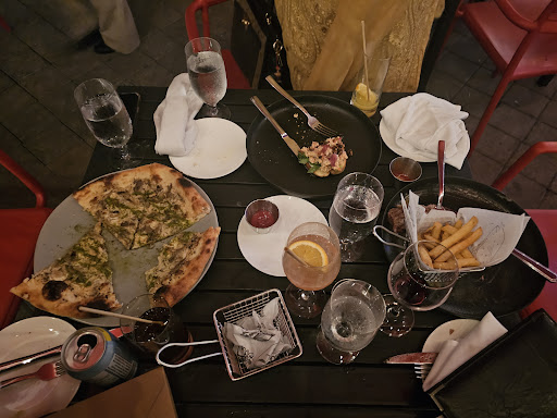 I ordered the pulled pork tacos ($26). 3 regular sized tacos with the usual trimmings, but be warned they don't give any additional sides with them, no quacomole, no chimichurri, no sour cream. Fries are included and were good. The tacos themselves weren't very good, the tortilla was stale and the pulled pork was dry and flavorless. Even the garnish, a hand full of cilantro leaves (with stems) made me feel like I was eating grass and overpowered the other ingredients in the taco. The server was kind enough to give a side of chimichurri upon request. Do yourself a favour visit taco taqueria, I've reviewed that place and it's incredible.
