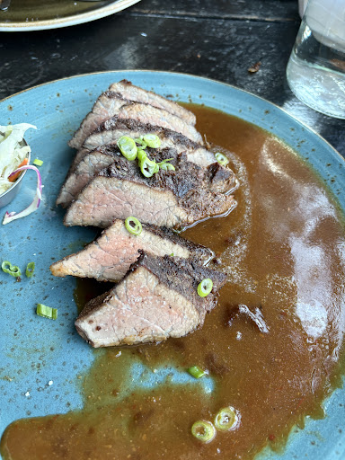 I ordered the steak and it came so over cooked it was almost inedible. On the menu the steak is described as medium rare, so the server didn’t ask how I would like it cooked, and I was happy with a medium rare. It came out grey and extremely over cooked. I’m shocked that it was even served to me, if the staff knows it’s described as being served medium rare? When I told the server it was over cooked she was very understanding and immediately brought it back to the kitchen. She came back and told me that they had no more raw steaks so they couldn’t remake it for me? So I guess they batch smoke their steaks and then just heat them up to serve?