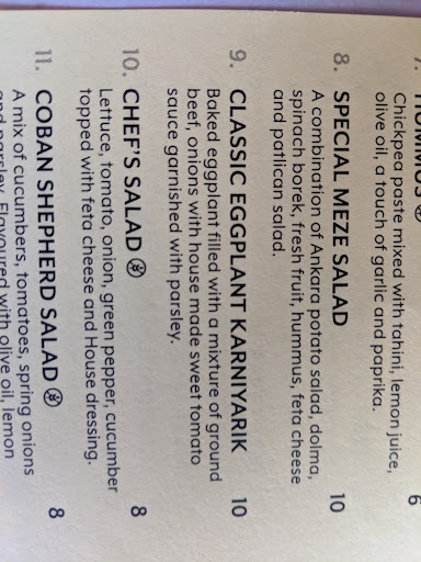 Read moreWent in for late lunch; we drove near half an hour to get to this place; thinking we will be delighted with real Turkish delights, instead the food was hardly edible, had no relationship with Turkish food neither in taste or look. We were basically served canned Humos and dolma, which were about the only thing edible at the place. The aubergine dish was soaked in vinegar rice was over cooked and probably had been frozen. The waitress was helpful and friendly, however the food was really, really just bad and very disappointing.