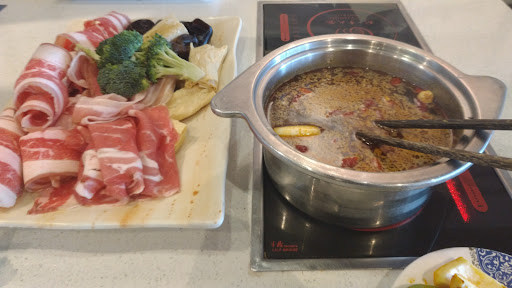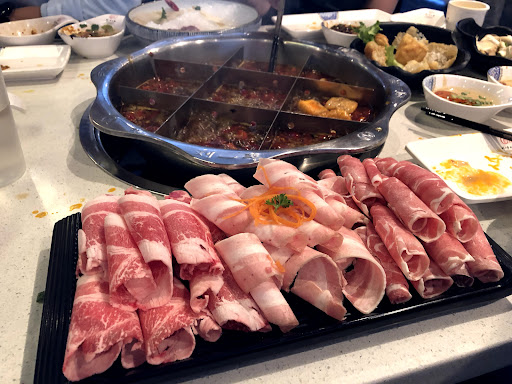 Read moreCame here for dinner on a Tuesday evening. There was a little bit of wait time even though The store was about half-packed. They have AYCE Monday-Friday 11:30-16:00 (not including holidays), soup base is NOT INCLUDED in the AYCE price. We came for dinner on a Tuesday so we ordered a la carte. We had the two-flavor soup base (鴛鴦鍋) with medium spicy mala soup base and the tomato beef soup base, both were a bit too greasy in my opinion. On top of the soup base and hot pot ingredients, you'd have to pay 2.5 dollars per person to be able to access the sauce and fruit/appetizers station, which didn't have much variety: there were peanuts, crackers, wood ear, pickled cabbage, and sliced oranges. I was hoping the honeydew would be refilled but that never happened. The food came out shortly after my order was taken. The ingredients were fresh and nicely plated. The server was very nice and diligent in cleaning up, although he missed a few orders, it wasn't a big deal and most issues were resolved after I mentioned we were still missing some items. The fried egg was pretty special, the server reminded me to dunk it into the non-spicy side of the pot which I really appreciated him telling me ahead of time. Overall, my husband and I had a great dining experience. Just wished there were more variety for fruit/appetizers and perhaps dessert. Also wished that the hot pot base was...