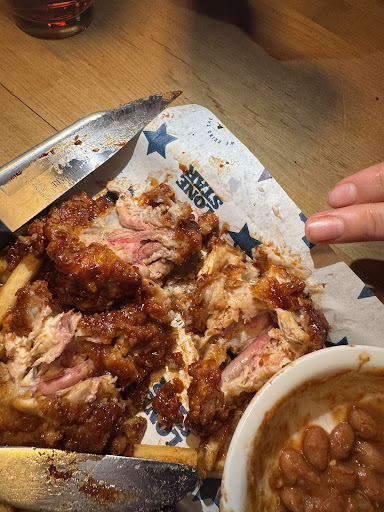 Service: Manager: Our waitress needs some training/ reminders . Server: Boots 358. She did not check on us once during our meal. There was a young man who brought us our food , she was with him said " you guys good?" and walked off not to be seen again until we got our bill. We had empty trays/dishes pilling up she wasn't coming by- so we were scrapping them onto one plate, putting the used cutlery together and stacking them at the end of the table so we had some room. It sat there until we paid the bill . Unfortunately, she never came to ask us if we needed anything during our meal i.e.: top up our drinks, ask if there was any extras we needed, offer desserts etc. Overall, very disappointing evening out...