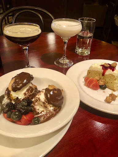 We began with a delicious cocktail. The menu is long and delightful so choosing only one is difficult. I finally settled on the French 75: gin, lemon juice and sparkling wine, elegant and tart. For an appetizer, I chose the farro and green olive salad. It was salty and savoury and more filling than I’d expected. They didn’t skimp on the toasted walnuts, so by the time I’d finished my salad, I wasn’t as hungry as I should have been for my main course, a rich bowl of cassoulet. When it arrived paired with a glass of Côtes du Rhône, my appetite revived. This is such a substantial meal that you can really only do it justice by coming to the table famished. Garlic and duck sausage, salted pork belly and white beans all simmering in an intricate tomato and red wine broth – heavenly, hearty peasant food. Since we had a show to catch, we weren’t able to stay for dessert and coffee, but the last time I ate at the Metropolitain, I asked if I could have my favourite dessert, an affogato, which wasn’t on their menu. They were happy to accommodate, going above and beyond to please the customer.