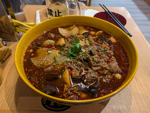 Read moreUnpleasant smell in the place should have been my first clue. From the presentation on maps it looked Korean, but turns out it’s Szechuan. Oh well, it’s open late, basic ambiance, music too loud. I love many Asian cuisines, but for me this food had terrible flavor, and although ingredients were reasonably fresh, they were low quality ingredients, in particular tough and dry beef. I specifically asked not to have numbing spice - I specifically said I don’t care for it. Unfortunately I had forgotten the word for the spice - ‘MA-LA’ but I was clear that i wanted none. There was plenty of MA-LA in the dish. I did eat about half my order before the numbing kicked in, so I paid, but I regret not running out on my order or asking not to pay. I was VERY clear with the server that I thought the restaurant was honestly trying to make good food, but to me it was most unpalatable. The flavor was such that I could not keep eating, not just because of the numbing, but also a sour and disagreeable flavor in the dish which no chili oil, onion, salt, or sugar would correct - I tried with condiments from their sauce table. To their credit they offered a 10% discount and a can of soda in apology, but I just can’t recommend this food. Bad taste still in my mouth a day later - mostly from numbing spices I asked to leave out. So no, although this restaurant is honest, I do not trust this food to be tasty....