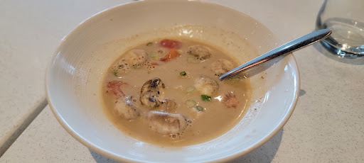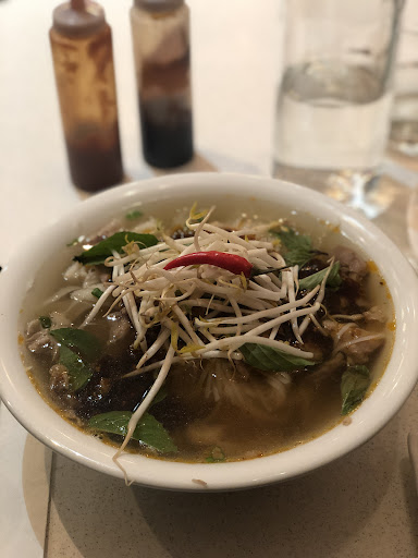 The broth was clear and tasted warm and delicious. The sriracha and hoisin sauces are offered in...