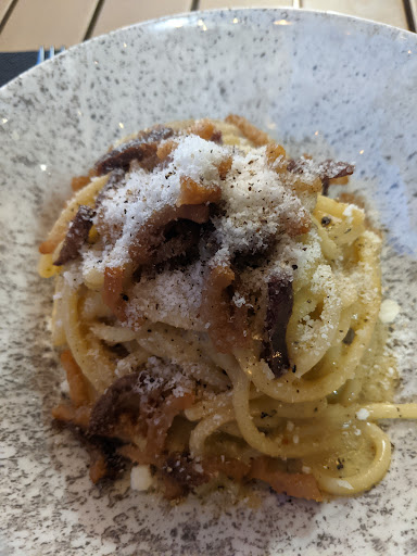 Started with “Gangster Meatballs” that were cooked and seasoned to perfection. Tried 2 different pastas for our main, both of which were delicious. But the salumia (?) spaghetti was DIVINE. If there weren’t other diners around, we might have licked our plates clean.