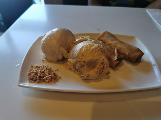 And we also had their simple, but very tasty dessert of bananas fried in spring roll wrappers with peanuts and ice cream.