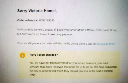 They donāt even deserve the one star since they moved the one on Bank Street I order something like those new folded wraps or whatever they are. It looks like pizza. I asked them to cook it less because I have problems chewing and they completely ignored me so Iām done Bye Pizza Hut. I wonāt miss your crappy service. I used to get Parmesan garlic Parmesan chicken. It was soaked in oil when I got the bowl. It was just a bunch of oil with some Parmesan. It was terrible. That is not a sauce. Thatās just a bunch of oil. I mean it was literally not even a creamy sauce anymore. It was just oil. So Iām really hungry and crippled. Itās hard to get outside right now with the snow so I decide to order some noodles and cinnamon buns because I love them I paid with my credit card. The guy never even knocked on the door. Never texted me never called me it is -25 outside Celsius. Weāre in Canada here and he left my food outside. Never knocked on the door. Never called me. Never texted me. Unbelievable you are done Pizza Hut. Iām going to badmouth you wherever I...