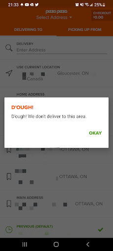 1 month later, tried to order only to be told by the app they did ban my address because they deliver to any of my neighbour's within my condo development but not my address. Just called to have this abuse of power investigated. They won't do much. So I moved to Little Ceasars - better pizza...