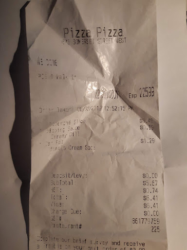 Read moreDo not ordering from pizza pizza on somerset they like to help themselves to their own tips. they will ask you to sign the receipt leaving tip blank simply cause that day you didn't have enough to tip. the driver helps himself and owner who delivers puts whatever tips he likes.. i decided to deliver on Aug 13th 2024 I order from there for my partner... this time It was was different driver I refused to give a tip cause I what's been getting ripped off by the owner doing same thing if he doesn't like the tip you give he will change put what he wants so I just signed the receipt Leaving tip blank cause they like to steal money from you this new delivery guy helped him self to a tip noticed my bank this morning I called pizza pizza company put it In a complaint about the somerset pizza pizza owner and delivery drivers stealing money helping themselves to there own amount tip this disgusting behavior there are people struggling and you having disgusting company like this that steals from people they should be ashamed.. do not trust this company! Pizza pizza on somerset st west.