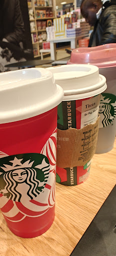 After overhearing their conversation I thanked her for reminding me it was red cup day! (I arrived at the location with my own reusable Starbucks cup from home) I went back to place my order for a Handcrafted Holiday drink to get my red cup to add to my collection.
