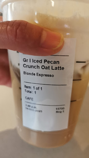 I don't want to complain about Starbucks; in fact, I am a regular customer on this branch, but today at 3:10pm on October 4 I ordered two regular iced hazelnut oat shaken espressos, and they were extremely bitter with far less cream than the ones I usually get. The same afternoon I ordered an iced pecan crunch oat latte at the same Starbucks, and it wasn't that terrible as the iced hazelnut oat shaken espresso, but it still lacked cream compared to other times. The name of the barista is Kee who made the coffee for my orders today. Look, I don't want something bad to happen to her career of course, but I want you to make her aware that the coffee today was not up to the standard. It is extremely rare that I will get bad coffee in this branch but today the coffee on both occasions wasn't up to standard. And Starbucks coffee is not so cheap. I am sorry for the ranting, I really did not want to do that...