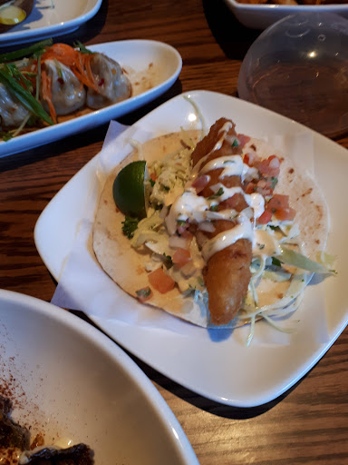 Stopped in for happy hour for some light eats. Got the baja brussels sprouts (hold the bacon), and a fish taco. The hubs got a chicken sandwich and soup dumplings. The kid got a side of fries and a scoop of ice cream.