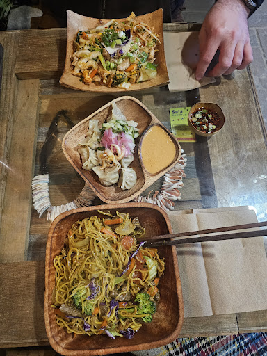 Just found this lovely place! We were looking for some good pad thai and noticed the reviews for Sula Wok. It does not disappoint! We had the beef momos and they were delicious ! Super juicy and flavourfull. The momos were served with pickled daikon radish, pickled cucumber, pickled onion and a bit of kimchi. It worked really well to cut through the beefy-ness of the momo. The dish was also served with dipping sauce. We chose a ginger sauce and a chili sauce (as a second extra sauce) and both were excellent. We also had the Tibetan fried noodles. I chose beef as my protein. I think it was the right choice as the sauce is something of a cross between a japanese curry and a singapore noodle. The beef could handle the strong and heavy flavour of the sauce. There was an array of veggies in the dish as well. The noodles were thin with a good chew. Over all a very nice dish, not too saucy and good curry flavours. We also had the pork pad thai. It was sweet and tangy as you'd expect from a pad thai. The pork was lightly seared and not over cooked. Again a nice mix of veggies in the dish as well. It wasn't the most authentic pad thai I've ever had but excellent none the less and definitely scratched the itch. Sula Wok is family owned and you can tell they put their heart and soul into their place. The owners run a great little place and are very kind. Keep in mind there is only outdoor seating so takeout is your go to if you want to eat indoors. We ate outside and it was lovely. Their tables display some very lovely pieces of jewelry that look like they can be purchased as well, so it's fun to take a look. Anyways, I would absolutely recommend this place. If you happen to be in the area and you're feeling a nice flavourfull east/southeast Asian dish this is definitely a spot to try. All the best to the owners and thank you for the lovely meal, friendly, honest service and the...