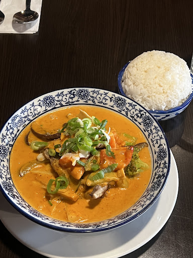 Read moreIf youâre looking to elevate your curry experience, the crispy duck Panang curry is an absolute must-try. This dish is a beautiful fusion of rich flavors and textures, delivering a delightful balance between the crispy, savory duck and the creamy, aromatic curry sauce. The star of this dish is, of course, the crispy duck. Itâs perfectly fried to achieve that ideal balance between crunchy skin and tender, juicy meat. The duck's richness is a perfect match for the bold and fragrant Panang curry sauce, which is thick, creamy, and a little spicyâthough not overwhelming. The smooth coconut milk in the sauce complements the savory heat from the red curry paste and the subtle zing of kaffir lime leaves, creating a mouthwatering symphony of flavors. What makes this dish stand out is how the crispy duck holds up against the curry. As you bite into each crispy piece into the velvety sauce, the contrast of texturesâcrispy skin and smooth curryâbecomes even more satisfying. It's a textural delight. The duckâs fatty richness is balanced by the curryâs fresh notes of lemongrass and basil, adding a zesty, herby touch that cuts through the indulgence. Served with a side of jasmine rice, this dish is not only a feast for the eyes, with its vibrant red curry sauce and the golden brown duck, but it also provides a complete, indulgent meal. The curryâs heat lingers gently on the tongue, without overpowering the senses, so each bite is both comforting and exciting. If youâre a fan of Thai food, this crispy duck Panang curry is a luxurious spin on a traditional favoriteâoffering both complexity and simplicity in every bite. Itâs the perfect harmony of crispy, tender, spicy, sweet, and creamy. Highly recommended for those who enjoy a rich, flavorful curry with a touch of elegance. This is the type of signature dish you go out of your way to order and I highly recommend it for those who enjoy a rich, flavorful curry with a touch...