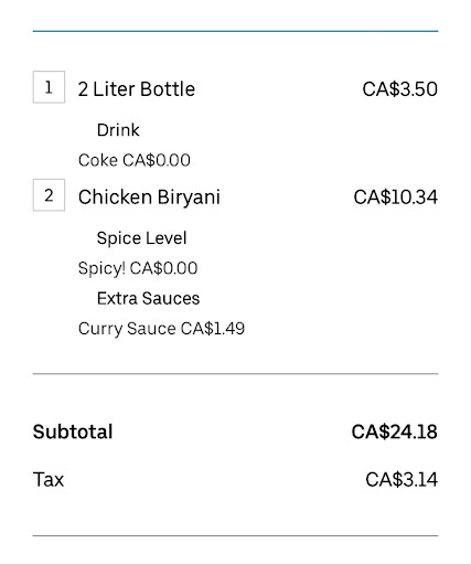 I ordered 2 set of pulao roast combo! I am a regular customer of this place and I enjoy the food too. However, I added a note on Ubereats app, and I requested them to remove the “rice” and IF POSSIBLE to add another piece of chicken. The key word being “ IF POSSIBLE “ I do not feel the rice they provide is cooked fully and I am used to having a different rice type, having the rice make me feel a little sick so instead of wasting the rice, I advised them to not give it, and instead it they could, give an additional piece of chicken. Since I ordered two sets, 1 chicken replacing 2 rice if possible was my request.