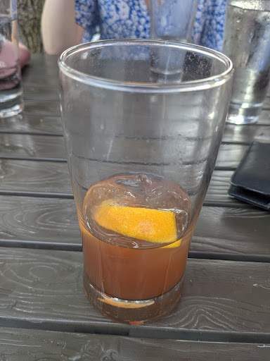 I ordered a Tavern Spritz, which according to the menu was a cocktail with black currant liqueur, red cinzano, sparkling wine, and soda. I received a drink that tasted heavily of pineapple and other fruits. I reread the menu and saw that the Mocktail Spritz had pineapple as its first ingredient and thought they must've misheard me and just charged me for the cocktail. I went back to the bar and expressed that I didn't think my drink was correct, however the bartender quickly let me know she had put the blackberry liqueur in it. They told me that the drink was meant to taste heavily of juice. I conceded that I must've been wrong and also didn't want to put them under more stress as the heat and wasps were already a lot.