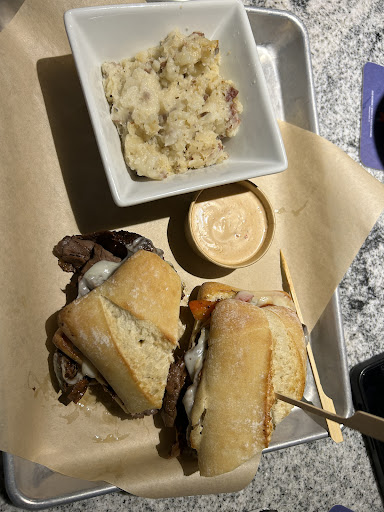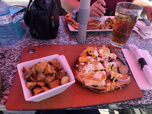 The food was also so, so. Portions were small. Someone at the table got a poutine and barely ate any because she said it's was not so good. The people behind us ordered gluten free, the same server had to be called over instead of his just checking on them at the same time as he brought me water. The woman says "Is this gluten free? We ordered Gluten free" Server says in an annoyed tone "The bun is gluten free, but there gluten in the mustard and in this and this." Why wasn't that all taken off before it arrived to the customer who was maybe Celiac? Or even better, why wasn't that mentioned when she said she wanted a gluten free bun?