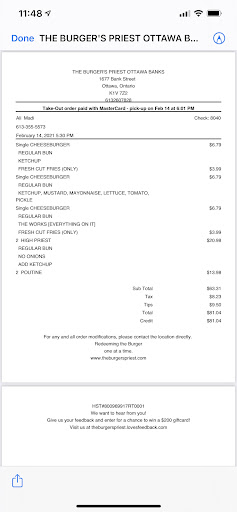 So - for a great burger experience, go to Burger Priest in person, place your order and dine in or verify your order before leaving.