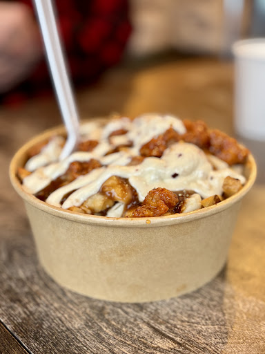 The food is made fresh right in front of you, which adds to the excitement. You can see the fries being cooked, the gravy being poured, and the toppings being added with precision and care. The fries are perfectly crispy on the outside and tender on the inside. The gravy is rich and flavorful, and the cheese curds are just the right consistency—soft but with a satisfying squeak.