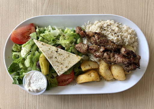As for the culinary experience, it was nothing short of exceptional. I indulged in a two pork skewer plate, accompanied by fluffy rice, a refreshing salad, and perfectly roasted potatoes. The dish was not only generously portioned but exuded the aromatic and tantalizing flavors synonymous with traditional Greek cuisine. Every bite was a delightful mix of warmth, freshness, and impeccable seasoning.