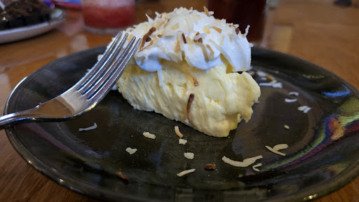 We got the salmon and the chicken. Unfortunately our dishes were a zero-star affair...they were flat and limp, with what looked like basic steamed vegetables on a lonely plate. In general everything looked and tasted like it arrived at the restaurant frozen in baggies and cooked in a microwave. That bad. We've had much better food on a economy-class plane trip. After a build up to the visit, it was suddenly "avoid talking about the dishes while we're there, and have a good time". Which we did. Our server was top notch, very friendly and very professional. We got to a quick chat, and it was her first time on five tables...she definitely handled it well, always checking in on how we were doing.